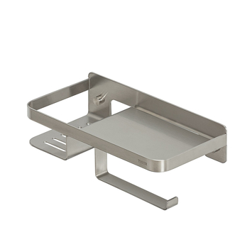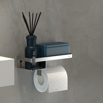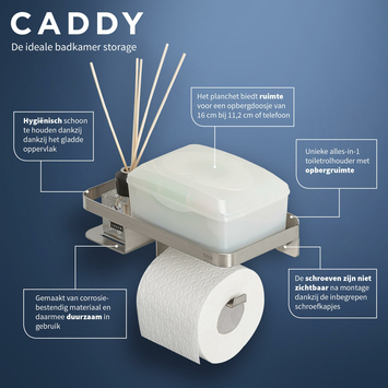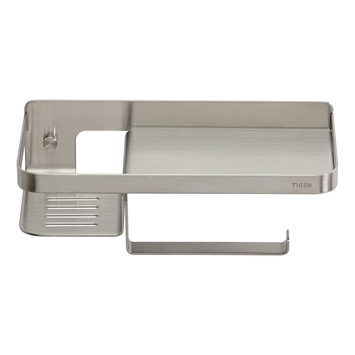 Je zit in één keer goed met deze unieke Tiger Caddy toiletrolhouder met planchet. Deze alles-in-1 toiletoplossing biedt ruimte voor geurstokjes, je mobiele telefoon, vochtig toiletpapier of zelfs een opbergdoosje voor hygiëne producten voor dames. Hij is de Houdini onder de badkameraccessoires, maar met de nieuwe Caddy is een opgeruimde badkamer geen illusie. Breng ook het tijdloze gevoel naar jouw badkamer met deze RVS variant.