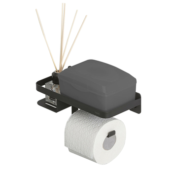 Je zit in één keer goed met deze unieke Tiger Caddy toiletrolhouder met planchet. Deze alles-in-1 toiletoplossing biedt ruimte voor geurstokjes, je mobiele telefoon, vochtig toiletpapier of zelfs een opbergdoosje voor hygiëne producten voor dames. Hij is de Houdini onder de badkameraccessoires, maar met de nieuwe Caddy is een opgeruimde badkamer geen illusie. Breng ook de elegante urban vibe naar jouw badkamer met deze variant in zwart.