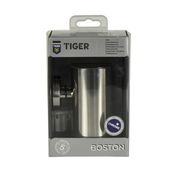 De Tiger Zeepdispenser Boston Medium Hangend Chroom van de accessoire serie Boston is uitgevoerd in glanzend RVS, en is ook verkrijgbaar in geborsteld RVS. De zeepdispenser bevat een uitneembare kunststof binnenfles, dit vereenvoudigt het vullen en het schoonmaken. Dit product kan aan de wand worden geschroefd, maar kan ook met behulp van Tigerfix 1 op een gladde en harde ondergrond geplakt worden. Je hoeft dus niet te boren. (Tigerfix is los verkrijgbaar). Er zijn van deze serie diverse sanitair accessoires verkrijgbaar, waaronder verschillende maten Boston zeepdispensers, inclusief de kleinere versie voor het toilet. Dit product maakt deel uit van het Boston totaalconcept, dat verder bestaat uit kranen, badmeubelen, douche accessoires en douchecabines, alles in de Boston stijl.