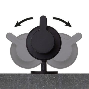 Stevig geplakt tegen de tegel. Handig dat het kan draaien.
