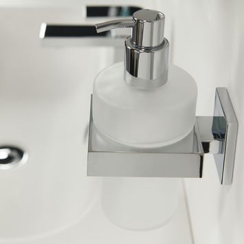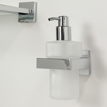 De Tiger Zeepdispenser Items Hangend Chroom van de accessoire serie Items is uitgevoerd in chroom gecombineerd met mat glas, en is ook verkrijgbaar in RVS. De zeepdispenser is uit de houder te nemen, waardoor het makkelijk bij te vullen en te reinigen is. Dit product kan aan de wand worden geschroefd, maar kan ook met behulp van Tigerfix 1 op een gladde en harde ondergrond geplakt worden. Je hoeft dus niet te boren. (Tigerfix is los verkrijgbaar). Er zijn van deze serie diverse sanitair accessoires verkrijgbaar. Dit product maakt deel uit van het Items totaalconcept, dat verder bestaat uit kranen, badmeubelen, douche accessoires en douchecabines, alles in de Items stijl.