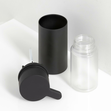 "De vrijstaande zeepdispenser uit de Tiger Noon serie is uitgevoerd in de kleur mat zwart en is voorzien van een uitneembaar zeepreservoir met een inhoud van 135 ml waardoor het artikel eenvoudig met vloeibare zeep te vullen is. De onderzijde van het zeeppompje is voorzien van een siliconen ring zodat het artikel stabiel staat en geen krassen veroorzaakt op de ondergrond. Naast gebruik in de badkamer en in het toilet is deze zeepdispenser ook uitermate geschikt voor gebruik in de keuken. De Noon serie bevat tevens een groot aantal aanvullende accessoires voor de badkamer en het toilet in dezelfde stijl.