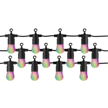 Het Tint Smart LED Lichtsnoer Stella RGBW 5,5W brengt sfeer en slimme verlichting in je tuin, balkon of terras. Met 12 lampen over een lengte van 8,79 meter en een extra lange aansluitsnoer van 3 meter is plaatsing flexibel en eenvoudig. De lampen zijn spatwaterdicht (IP44) en geschikt voor binnen- en buitengebruik. Kies uit wit licht van extra warm (1800K) tot koel daglicht (6500K), én gekleurd licht met 16 miljoen Tinten en diverse lichteffecten. Bedien het snoer via de gratis Tint Smart Light app (Bluetooth) of met de Tint afstandsbediening (apart verkrijgbaar). Dankzij Zigbee 3.0 is integratie in populaire smart home systemen zoals Philips Hue, Magenta SmartHome en Samsung SmartThings mogelijk. Ook spraakbesturing via Amazon Alexa (Echo met Zigbee) wordt ondersteund. Uitbreidbaar tot maximaal 24 lampen (apart verkrijgbaar).