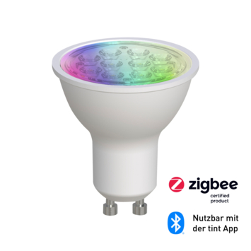 De Tint Smart LED Spot RGBW 4,7W GU10 brengt slimme verlichting naar een compact formaat. Dankzij dual-chip technologie met Zigbee en Bluetooth is de spot direct klaar voor gebruik: eenvoudig inschroeven en bedienen via de gratis Tint Smart Light app of de Tint afstandsbediening (apart verkrijgbaar). De spot biedt wit licht van extra warm (1800K) tot koel daglicht (6500K), én gekleurd licht met keuze uit 16 miljoen Tinten. Ideaal voor elke sfeer: van geconcentreerd werklicht tot feestverlichting of rustgevende nachtlamp. Traploos dimbaar en voorzien van vooraf ingestelde lichtscènes zoals ‘Romantisch’ of ‘Party’. Spraakbesturing via Amazon Alexa (Echo met Zigbee) maakt bediening nog eenvoudiger. Compatibel met systemen zoals Philips Hue, Magenta SmartHome en Samsung SmartThings via een Zigbee gateway.