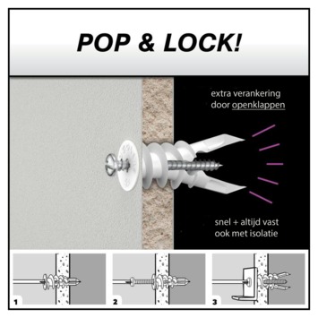 De Toggler-gipsplaatplug SP-6, 6 stuks met schroeven, is geschikt voor montage in gipsplaat van 9,5mm, 12,5mm of 15mm dikte. De gipsplaatplug monteert u snel en eenvoudig, omdat deze zelfborend en zelfborgend is. Voorboren is dus niet nodig. U gebruikt een schroef van 3,5mm bij 4,5mm dikte en een minimale lengte van 32mm plus de materiaaldikte. Voor montage van deze schroef gebruikt u een schroevendraaier of hetzelfde bitje als u voor montage van de SP-plug gebruikt. Zodra de gipsplaatplug in de wand is geplaatst, klapt deze open achter de gipsplaat. Dit zorgt voor een extra stevige bevestiging van verschillende voorwerpen met een maximaal gewicht van 145kg, afhankelijk van het materiaal waarin u monteert. Denk aan schilderijen, spiegels, kasten of flatscreens. Deze verpakking bevat in totaal 6 SP-gipsplaatpluggen van Toggler.