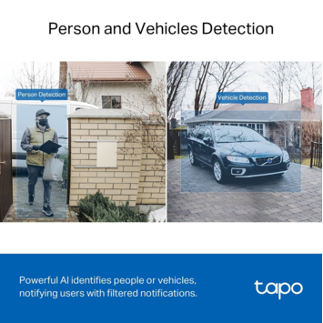 - De intelligente AI-detectie identificeert mensen, huisdieren en auto's en stuurt meldingen
