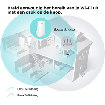Versterk het huidige wifi-signaal tot je slaapkamer met de TP-Link RE200 dual-band wifi-repeater. Steek de stekker in het stopcontact en verbind de repeater direct via de WPS knop met je wifi. De led-lichtjes helpen je om de ideale plek in huis te vinden.
