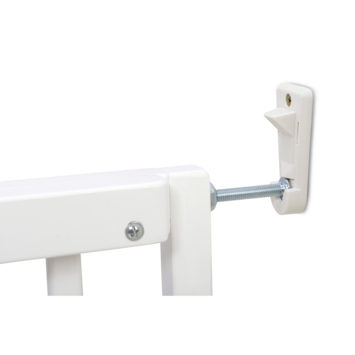 Het Traphekje Liam hout 63-103,5 cm is een voordelig houten traphek in de kleur wit. Je kunt dit hekje gebruiken als traphek of als deurhek. Deze is zelf op eenvoudige wijze te monteren en scharniert in 2 richtingen. Een dubbele vergrendeling en gemakkelijk met één hand te bedienen. Het traphek heeft een vaste hoogte van 75 cm en is in de breedte instelbaar van 63 cm tot 103.5 cm. Het traphekje voldoet aan de strenge eisen voor kindertraphekjes EN-1930:2011 en is geschikt voor kinderen van 0-24 maanden.