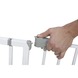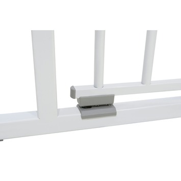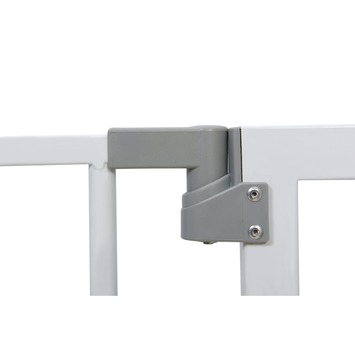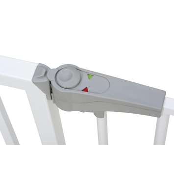 Het trap- en deurhekje SARA 73 – 81,5 cm is een metalen traphek dat als klemmend frame kan worden gemonteerd op muren of deurposten met daarbinnen een scharnierend hek.Voor extra veiligheid worden wallcups bijgeleverd die op de wand kunnen worden gemonteerd. Dit hek scharniert in 2 richtingen, maar desgewenst kan één van de richtingen worden geblokkeerd. Een indicator geeft dan aan naar welke richting het hek moet worden geopend. Het hek heeft een dubbele beveiliging tegen openen, maar kan gemakkelijk met één handbeweging door een volwassene worden geopend en gesloten. Als extra 3e beveiliging kunnen desgewenst ook beide scharnierrichtingen worden geblokkeerd. Het hek SARA kan worden verlengd met maximaal 4 verlengstukken van 8,5 cm en dus tot een maximale breedte van 115,5 cm worden gebruikt. Dit traphekje voldoet aan de strenge eisen voor kindertraphekjes. Het traphekje is geschikt voor kinderen van 0-24 maanden. Kortom, met het traphekje Sara zorg je voor optimale veiligheid voor kinderen.