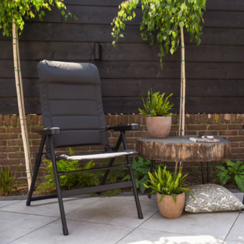 Ervaar ultiem comfort met de opvouwbare Ravenna stoel van Travellife. Deze kampeerstoel biedt luxe dankzij de gewatteerde zitting en leuning, inclusief een hoofdkussen voor extra ondersteuning. Met de verstelbare rugleuning, die 7 verschillende standen heeft, kun je de stoel eenvoudig afstemmen op jouw ideale zitpositie. De aflopende zitting verlicht de druk op je bovenbenen, voor nog meer comfort. Gemaakt van antraciet Polyweave en een stevig aluminium frame, is de stoel licht, waterafstotend en stevig. Na gebruik klap je de stoel eenvoudig op, ideaal voor kamperen, festivals of gewoon ontspannen in de tuin.