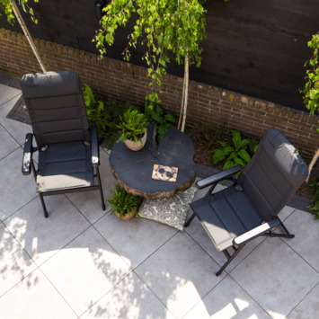 Nu kan je van een zonnetje genieten zonder dat je eerst hoeft te sjouwen. Wij gebruiken hem dus gewoon als tuinstoel in ons tuintje