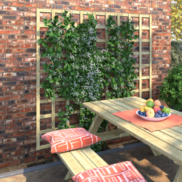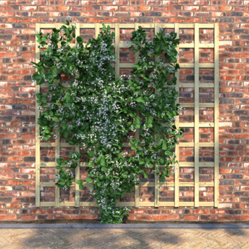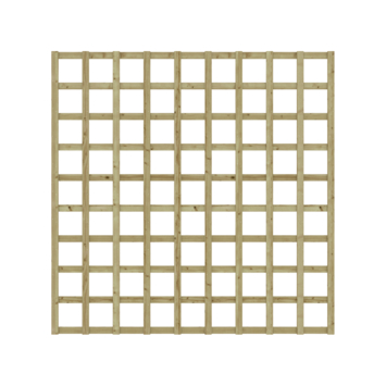 Het trellisscherm van ca. 180 x 180 cm is gemaakt van geïmpregneerd grenenhout en heeft een olijfgroene kleur. Dit scherm biedt een stevige basis voor klimplanten en is ideaal om doorkijkjes in je schutting te creëren. Door de impregnatie is het hout goed bestand tegen weersinvloeden, wat bijdraagt aan een lange levensduur van 15 jaar of meer.