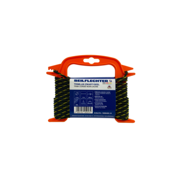 Trimlijn lijn is kwaliteitsproduct van Seilflechter. De diameter is 4mm met een lengte van 10mtr gewikkeld op een herbruikbare haspel, de kleur is zwart met een gele merkdraad. De trimlijn lijn heeft een hoge breek sterkte van 390kg en een minimale rek.