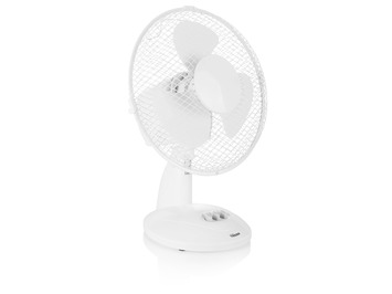 De Tristar tafelventilator wit 23 cm is ideaal voor de warme dagen. De ventilator is voorzien van drie kunststof ventilatorbladen in een veilige metalen behuizing. De doorsnede van de tafelventilator is 23 centimeter. De ventilator kan naar keuze op één van de drie snelheden worden gezet. De blaasrichting kan worden vastgezet, maar je hebt ook de mogelijkheid om een groter deel van de ruimte te verkoelen door de zwenkfunctie aan te zetten.