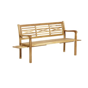 Bank Artesa is een ideale tuinbank, vanwege zijn twee uitschuifbare bladen die aan weerszijde van de bank zitten. Zo heb je met de Tuinbank Artesa Hout 88x150x62,5 cm gelijk twee bijzettafels om servies op te plaatsen. De bank bestaat geheel uit acaciahout (hardhout).