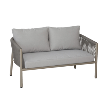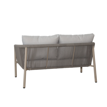 De tuinbank Lugo is een metalen tuinbank met stoffen kussens, geschikt voor twee personen. Je gebruikt de beige tuinbank als vaste zitplek in de tuin, op het terras of onder een overkapping om even te zitten, te lezen of samen buiten te zijn.