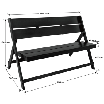 Tuinbank Vlieland 120 cm zwart dennenhout inklapbaar