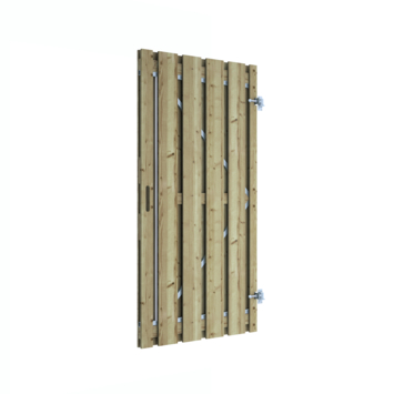 De Royal tuindeur is ideaal om de tuin af te scheiden waarachter je heerlijk kunt ontspannen, genieten van de natuur en kostbare momenten kunt doorbrengen met dierbaren. De tuindeur is 180 cm hoog, 100 cm breed en 5,1 cm diep. De tuindeur bestaat uit 11 verticale planken die op een stalen frame zijn vastgemaakt. De deur is tweezijdig en kan zowel links- als rechtsdraaiend gemonteerd worden. De tuindeur heeft enige doorkijk en wordt inclusief hengen, zonder sluitwerk en zonder duimen geleverd. De tuindeur is gemaakt van geïmpregneerd grenen hout dat een vleugje rustieke charme toevoegt aan de tuin. Het impregneren van het hout zorgt ervoor dat de levensduur verlengd wordt tot 10-15 jaar en dat het hout resistent wordt tegen (oppervlakte) schimmels.