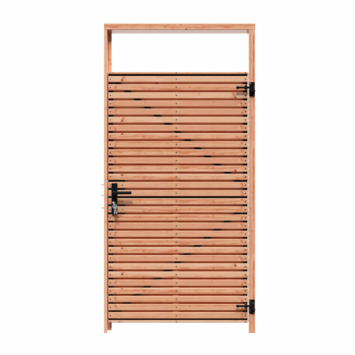 De tuindeur heeft een hoogte van 178 cm, een breedte van 99 cm en een diepte van 5 cm. Het horizontale ontwerp zorgt voor weinig inkijk, wat extra privacy biedt in jouw tuin. Het slotgat is strategisch geplaatst, zodat de deur zowel links- als rechtsdraaiend te monteren is. De deur wordt compleet geleverd met duimen en hengen, zodat je direct kunt beginnen met monteren.