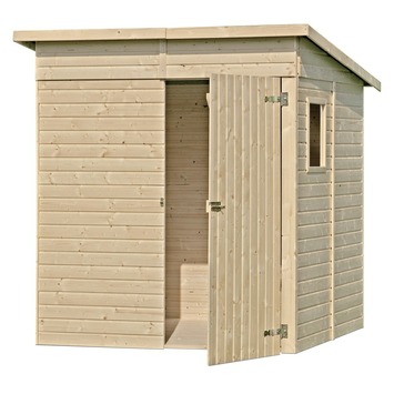 Door zijn afmetingen is de blokhut met name geschikt als schuurtje voor gereedschap of het opbergen van tuinmeubilair.