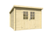 Dit tuinhuis is gemaakt van vurenhout en is geïmpregneerd. De wandbalken zijn massief, 28 mm dik en geschaafd afgewerkt. Dankzij de traditionele stapelbouwwijze is de montage goed te volgen en prima te doen voor de gemiddelde klusser. Het tuinhuis heeft een schuin dak. Voor een goede afwerking wordt geadviseerd het dak af te werken met EPDM dak folie. De latten voor de 6-vlaks raamverdeling op de ruit in de deur worden los meegeleverd. Alle aangegeven maatvoeringen zijn circa maten.