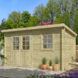 Dit tuinhuis is gemaakt van vurenhout en is geïmpregneerd. De wandbalken zijn massief, 28 mm dik en geschaafd afgewerkt. De traditionele stapelbouwwijze zorgt ervoor dat de montage overzichtelijk is en goed te doen voor de gemiddelde klusser. De voorwand kan gespiegeld opgebouwd worden, waarbij het raam links van de dubbele deur komt. Het raam is een draai-kiep raam en kan naar binnen toe kantelend of draaiend worden geopend. De latten voor de 6-vlaks raamverdeling op de ruit in de deur worden los meegeleverd. Het tuinhuis heeft een schuin dak. Voor een goede afwerking wordt geadviseerd het dak af te werken met EPDM dak folie. Alle aangegeven maatvoeringen zijn circa maten.