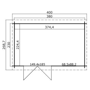 - Afmetingen buitenzijde: 380 x 230 cm