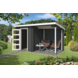 Dit tuinhuis is opgebouwd uit antraciet gecoat hout. De coating biedt buiten een strakke afwerking in een moderne kleur ook een beschermende laag. Het betekent echter niet dat het hout onderhoudsvrij is. Ook gecoat hout dient onderhouden te worden. In de loop van tijd moeten de beschadigde puntjes bij getipt worden en na 5-8 jaar behandel je het huisje opnieuw. Het tuinhuisje moet dan aan de buiten- en binnenkant nauwkeurig behandeld worden. Extra aandacht gaat uit naar deuren en ramen, want die zijn veruit het kwetsbaarst.