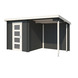 Een tuinhuis is altijd handig voor het opbergen van tuinspullen of om onder te relaxen en met een overkapping heb je zeker voldoende ruimte. Met zowel een binnen- als buitenruimte is dit tuinhuis prima geschikt voor zowel het opslaan van spullen, als voor het gebruik als tweede (buiten) huiskamer. Het huis is vervaardigd uit Noord-Europees vurenhout, dat bekend staat om zijn makkelijke bewerking. Het huis heeft een deur met ramen en een cilinderslot, zodat je jouw spullen veilig kunt opbergen. De bitumendakbedekking maakt het dak waterdicht. Je kunt zelf kiezen of je de overkapping links of rechts tegen de berging bouwt. Dankzij het stapelbouwprincipe kun je dit tuinhuis met overkapping makkelijk zelf in elkaar zetten.