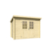 Dit tuinhuis is gemaakt van geschaafd vurenhout en wordt onbehandeld geleverd. De wanddelen zijn 28 mm dik en worden opgebouwd met een stapelbouwmethode waarbij de planken laag voor laag op elkaar worden geplaatst. Dankzij deze constructie is het tuinhuis goed te monteren zonder steunpilaren en geschikt voor de gemiddelde klusser. Het tuinhuis heeft een schuin dak met een nokhoogte van 211 cm. De deuren zijn voorzien van hang- en sluitwerk en worden geleverd met een cilinderslot. Alle maatvoeringen zijn circa maten.