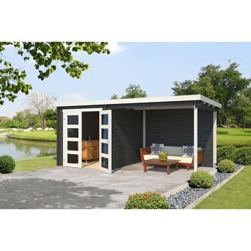 Dit tuinhuis is opgebouwd uit antraciet gecoat hout. De coating biedt buiten een strakke afwerking in een moderne kleur ook een beschermende laag. Het betekent echter niet dat het hout onderhoudsvrij is. Ook gecoat hout dient onderhouden te worden. In de loop van tijd moeten de beschadigde puntjes bij getipt worden en na 5-8 jaar behandel je het huisje opnieuw. Het tuinhuisje moet dan aan de buiten- en binnenkant nauwkeurig behandeld worden. Extra aandacht gaat uit naar deuren en ramen, want die zijn veruit het kwetsbaarst.