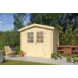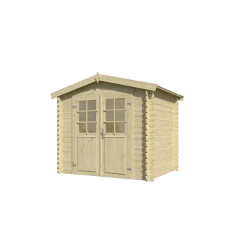 Het tuinhuis is gemaakt van glad geschaafd vurenhout en wordt onbehandeld geleverd. Je kunt het hout zelf bewerken met beits of verf. De wanden bestaan uit massieve balken van 28 mm dik die je stapelt met een klassieke stapelbouwmethode. Dit zorgt voor een stabiele opbouw en maakt de montage overzichtelijk. De latten voor de raamverdeling in de deur worden los meegeleverd.