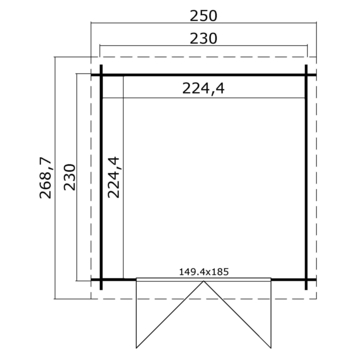 - Afmeting buitenzijde: 270 × 250 cm