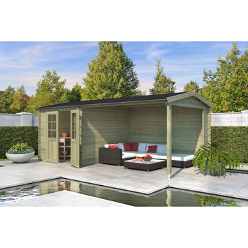 Tuinhuis Karyna geïmpregneerd met overkapping 590x313 cm