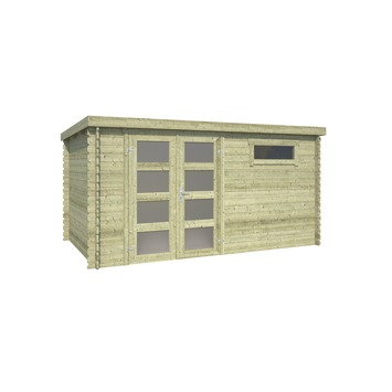 Een tuinhuis kopen doe je misschien voor extra opslag, maar ook kun je het gebruiken als extra kamer om in te relaxen. Deze relatief grote blokhut is gemaakt van Noord-Europees vurenhout. Dat is een houtsoort die vrij zacht en makkelijk te bewerken is. De enkele deur en ramen zijn voorzien van echt glazen ruiten. Je breekt dus niks af op zonlicht. Het cilinderslot zorgt ervoor dat je het tuinhuisje prima kunt afsluiten. Het dak heeft een basislaag van bitumen. Dat is een materiaal die bekend staat om zijn waterdichtheid. Daarnaast heeft het een levensduur van 20 tot 40 jaar. Dit tuinhuis wordt geleverd met dakleer, dakverankering, hang en sluitwerk en een opbouwbeschrijving.