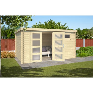 Een tuinhuis kopen doe je misschien voor extra opslag, maar ook kun je het gebruiken als extra kamer om in te relaxen. Deze relatief grote blokhut is gemaakt van Noord-Europees vurenhout. Dat is een houtsoort die vrij zacht en makkelijk te bewerken is. De enkele deur en ramen zijn voorzien van echt glazen ruiten. Je breekt dus niks af op zonlicht. Het cilinderslot zorgt ervoor dat je het tuinhuisje prima kunt afsluiten. Het dak heeft een basislaag van bitumen. Dat is een materiaal die bekend staat om zijn waterdichtheid. Daarnaast heeft het een levensduur van 20 tot 40 jaar. Dit tuinhuis wordt geleverd met dakleer, dakverankering, hang en sluitwerk en een opbouwbeschrijving.