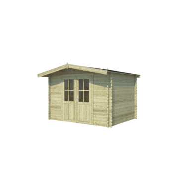 Tuinhuis Mark vurenhout geïmpregneerd 292 x 230 cm is een ruime blokhut die geschikt is als schuurtje of opbergruimte in de tuin. De buitenmaat bedraagt 292 x 230 cm. Dit tuinhuis is gemaakt van geschaafd vurenhout en wordt geïmpregneerd geleverd. De wanden zijn opgebouwd uit massieve wandbalken van 2,8 cm dik die met de stapelbouwmethode worden geplaatst.