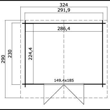 - Afm. buitenzijde (lxb): 292 x 230 cm