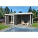 Tuinhuis Birgitta is een praktische berging met een leuke overkapping en moderne uitstraling. De overkapping is zeer geschikt om bijvoorbeeld je tuinset onder te zetten. Dit vurenhouten tuinhuis is sterk en robuust, daarbij is deze dankzij het stapelbouwprincipe gemakkelijk in elkaar te zetten. Het tuinhuisje heeft een aparte bergruimte met hierin een dubbele deur, deze is voorzien van echt glas, zodat je overdag genoeg lichtinval hebt. De deuren hebben een cilinderslot, je kunt hem dus veilig afsluiten. Het wandelement in de overkapping zorgt voor beschutting en veel privacy. Het licht hellende lessenaarsdak zorgt voor een natuurlijke afwatering en wordt geleverd inclusief een dakbedekking van asfaltvlies.