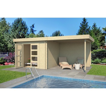 Tuinhuis Birgitta is een praktische berging met een leuke overkapping en moderne uitstraling. De overkapping is zeer geschikt om bijvoorbeeld je tuinset onder te zetten. Dit vurenhouten tuinhuis is sterk en robuust, daarbij is deze dankzij het stapelbouwprincipe gemakkelijk in elkaar te zetten. Dit prachtige tuinhuis wordt als bouwpakket onbehandeld thuis geleverd, en GAMMA adviseert je om het hout goed te behandelen en te onderhouden zodat je er lang plezier van zult hebben. Het tuinhuisje heeft een aparte bergruimte met hierin een dubbele deur, deze is voorzien van echt glas, zodat je overdag genoeg lichtinval hebt. De deuren hebben een cilinderslot, je kunt hem dus veilig afsluiten. Het wandelement in de overkapping zorgt voor beschutting en veel privacy. Het licht hellende lessenaarsdak zorgt voor een natuurlijke afwatering en wordt geleverd inclusief een dakbedekking van asfaltvlies.