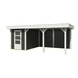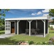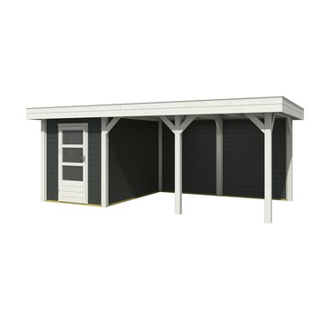 Zoek je een groot tuinverblijf met zowel een gesloten bergruimte als een houten overkapping? Dan zit je met de overkapping Borneo helemaal goed. Dit tuinverblijf is gemaakt van Noord-Europees vurenhout, een van nature zachte houtsoort dat makkelijk te bewerken en relatief goedkoop is. Het dak is voorzien van een hoogwaardig EPDM-rubberfolie, een degelijk en waterdicht materiaal dat ongeveer 50 jaar meegaat. De meegeleverde dakdoorvoer en afvoerpijp zorgen ervoor dat regenwater snel en netjes afgevoerd wordt. De massieve palen hebben een dikte van 12x12 cm en geven de tuin overkapping een stoer en robuust uiterlijk. Met een oppervlakte van 17,8 m² biedt dit tuinverblijf je veel opslagruimte. Dankzij de aparte bergruimte en wandelementen, zorgt dit verblijf voor een beschutte plek met veel privacy.
