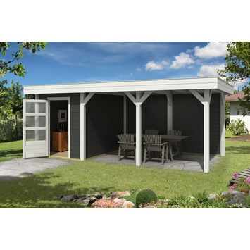 Bij een overkapping maken is de fundering van cruciaal belang. Zo ook bij dit Tuinhuis met Overkapping Borneo Gecoat Hout Antraciet 638x354 cm. Zorg er altijd voor dat de ondergrond stevig verhard en waterpas is. Zo voorkom je verzakkingen. De fundering kan bestaan uit gestort beton, maar ook een strak gelegd terras van betonnen tegels kan voldoen. Het is aan te raden om de bijpassende funderingsbalken te bestellen. Dat zijn profielen die tussen de fundering en de eerste wandlaag komen en voor een goede afwatering zorgen.
