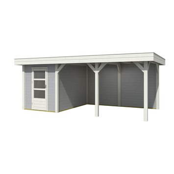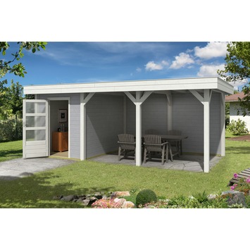 Zoek je een groot tuinverblijf met zowel een gesloten bergruimte als een houten overkapping? Dan zit je met de overkapping Borneo helemaal goed. Dit tuinverblijf is gemaakt van Noord-Europees vurenhout, een van nature zachte houtsoort dat makkelijk te bewerken en relatief goedkoop is. Het dak is voorzien van een hoogwaardig EPDM-rubberfolie, een degelijk en waterdicht materiaal dat ongeveer 50 jaar meegaat. De meegeleverde dakdoorvoer en afvoerpijp zorgen ervoor dat regenwater snel en netjes afgevoerd wordt. De massieve palen hebben een dikte van 12x12 cm en geven de tuin overkapping een stoer en robuust uiterlijk. Met een oppervlakte van 17,8 m² biedt dit tuinverblijf je veel opslagruimte. Dankzij de aparte bergruimte en wandelementen, zorgt dit verblijf voor een beschutte plek met veel privacy.