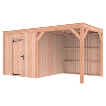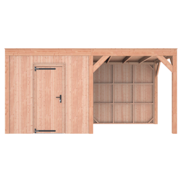 Dit modern vormgegeven tuinverblijf biedt een perfecte balans tussen uitstraling en functionaliteit. De totale afmetingen zijn 245 cm hoog, 495 cm breed en 255 cm diep. De berging heeft een breedte van 228,5 cm met een deur van 75cm x192,5cm.De overkapping heeft een breedte van 228,5 cm en een doorloophoogte van 224 cm.Of je nu een gezellige loungehoek, een opslagruimte of een overdekte plek voor tuinfeestjes zoekt, dit Douglas tuinverblijf is een aanwinst voor iedere tuin.Natuurlijke uitstraling, degelijke kwaliteit.De wanden zijn bekleed met Half houts rabat en de constructie is gemaakt van onbehandeld Douglas met stevige staanders van 12x12cm.De keuze voor onbehandeld Douglas hout biedt een authentieke uitstraling en staat ook garant voor een lange levensduur.Functies:Door een overkapping mét opslag te kiezen, heb je een praktische ruimte om bijvoorbeeld tuingereedschap of fietsen op te slaan en af te sluiten, maar ook voor een ruimte om heerlijk beschut te ontspannen in uw eigen tuin. Het beste van 2 werelden!Klaar voor een groene toekomst:Dit modern vormgegeven tuinverblijf is speciaal ontworpen om zonnepanelen of een sedum dak te kunnen ondersteunen, Hierdoor is dit verblijf een duurzame en milieuvriendelijke aanvulling op uw tuin is.Zelf aan de slagDankzij de duidelijke opbouwomschrijving, meegeleverde bevestigingsmaterialen en op maat gezaagde onderdelen, is de installatie van dit tuinhuis een haalbare klus voor iedere gemiddelde doe-het-zelver. Dak bekleding:Wij raden aan om deze Douglas overkapping te voorzien van een EPDM Dak bekleding voor een lekvrij dak (Let op: los bij te bestellen).Onderhoud:Bij het kopen van een overkapping is onderhoud een aandachtspunt… Met Douglas hout heb je het goed voor elkaar, Douglas is namelijk van zichzelf al een sterke houtsoort. Het gaat zonder extra behandeling eenvoudig 10 tot 15 jaar mee. Om de maximale levensduur te verlengen kun je gebruik maken van speciale Douglas beits of Douglas olie en elke 2 jaar opnieuw beitsen of oliën.