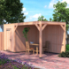 Dit modern vormgegeven tuinverblijf biedt een perfecte balans tussen uitstraling en functionaliteit. De totale afmetingen zijn 245 cm hoog, 545 cm breed en 255 cm diep. De berging heeft een breedte van 328,5 cm met een deur van 75cm x192,5cm.De overkapping heeft een breedte van 178,5 cm en een doorloophoogte van 224 cm.Of je nu een gezellige loungehoek, een opslagruimte of een overdekte plek voor tuinfeestjes zoekt, dit Douglas tuinverblijf is een aanwinst voor iedere tuin.Natuurlijke uitstraling, degelijke kwaliteit.De wanden zijn bekleed met Half houts rabat en de constructie is gemaakt van onbehandeld Douglas met stevige staanders van 12x12cm.De keuze voor onbehandeld Douglas hout biedt een authentieke uitstraling en staat ook garant voor een lange levensduur.Functies:Door een overkapping mét opslag te kiezen, heb je een praktische ruimte om bijvoorbeeld tuingereedschap of fietsen op te slaan en af te sluiten, maar ook voor een ruimte om heerlijk beschut te ontspannen in uw eigen tuin. Het beste van 2 werelden!Klaar voor een groene toekomst:Dit modern vormgegeven tuinverblijf is speciaal ontworpen om zonnepanelen of een sedum dak te kunnen ondersteunen, Hierdoor is dit verblijf een duurzame en milieuvriendelijke aanvulling op uw tuin is.Zelf aan de slagDankzij de duidelijke opbouwomschrijving, meegeleverde bevestigingsmaterialen en op maat gezaagde onderdelen, is de installatie van dit tuinhuis een haalbare klus voor iedere gemiddelde doe-het-zelver. Dak bekleding:Wij raden aan om deze Douglas overkapping te voorzien van een EPDM Dak bekleding voor een lekvrij dak (Let op: los bij te bestellen).Onderhoud:Bij het kopen van een overkapping is onderhoud een aandachtspunt… Met Douglas hout heb je het goed voor elkaar, Douglas is namelijk van zichzelf al een sterke houtsoort. Het gaat zonder extra behandeling eenvoudig 10 tot 15 jaar mee. Om de maximale levensduur te verlengen kun je gebruik maken van speciale Douglas beits of Douglas olie en elke 2 jaar opnieuw beitsen of oliën.