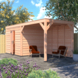 Tuinhuis met overkapping Douglas hout Zweeds rabat onbehandeld 595 x 255 cm