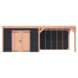 Dit modern vormgegeven tuinverblijf biedt een perfecte balans tussen uitstraling en functionaliteit. De totale afmetingen zijn 245 cm hoog, 695 cm breed en 255 cm diep. De berging heeft een breedte van 328,5 cm met een deur van 75cm x192,5cm.De overkapping heeft een breedte van 328,5 cm en een doorloophoogte van 224 cm.Of je nu een gezellige loungehoek, een opslagruimte of een overdekte plek voor tuinfeestjes zoekt, dit Douglas tuinverblijf is een aanwinst voor iedere tuin.Natuurlijke uitstraling, degelijke kwaliteit.De wanden zijn bekleed met Zwart Zweeds rabat en de constructie is gemaakt van onbehandeld Douglas met stevige staanders van 12x12cm.De keuze voor onbehandeld Douglas hout biedt een authentieke uitstraling en staat ook garant voor een lange levensduur.Functies:Door een overkapping mét opslag te kiezen, heb je een praktische ruimte om bijvoorbeeld tuingereedschap of fietsen op te slaan en af te sluiten, maar ook voor een ruimte om heerlijk beschut te ontspannen in uw eigen tuin. Het beste van 2 werelden!Klaar voor een groene toekomst:Dit modern vormgegeven tuinverblijf is speciaal ontworpen om zonnepanelen of een sedum dak te kunnen ondersteunen, Hierdoor is dit verblijf een duurzame en milieuvriendelijke aanvulling op uw tuin is.Zelf aan de slagDankzij de duidelijke opbouwomschrijving, meegeleverde bevestigingsmaterialen en op maat gezaagde onderdelen, is de installatie van dit tuinhuis een haalbare klus voor iedere gemiddelde doe-het-zelver. Dak bekleding:Wij raden aan om deze Douglas overkapping te voorzien van een EPDM Dak bekleding voor een lekvrij dak (Let op: los bij te bestellen).Onderhoud:Bij het kopen van een overkapping is onderhoud een aandachtspunt… Met Douglas hout heb je het goed voor elkaar, Douglas is namelijk van zichzelf al een sterke houtsoort. Het gaat zonder extra behandeling eenvoudig 10 tot 15 jaar mee. Om de maximale levensduur te verlengen kun je gebruik maken van speciale Douglas beits of Douglas olie en elke 2 jaar opnieuw beitsen of oliën.
