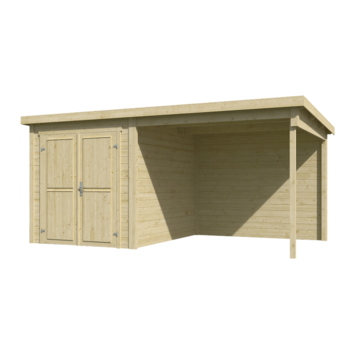 Tuinhuis met overkapping Finn vurenhout onbehandeld 450 x 250 cm