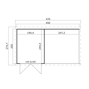 - Afm. buitenzijde (lxb): 450 x 250 cm