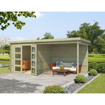 Tuinhuis met overkapping Helena vurenhout geïmpregneerd 492 x 254 cm